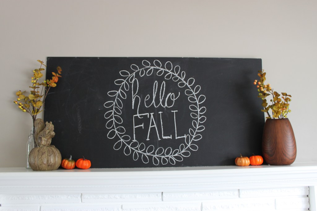 Here’s the latest video. Now that I’m done decorating the kids get to have fun with the chalk board and display their art above the fireplace. Got to love rainy fall days!