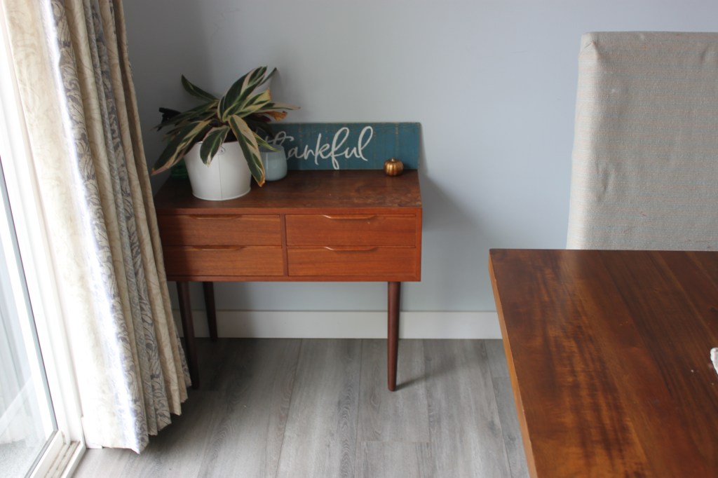 I’ve been doing a bunch of fall cleaning and happened to move this little table to the other side of this wall. If you watch my video you will see I had it on the other side.