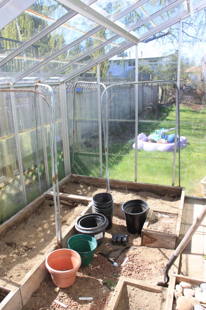 Also, on the to do list is the greenhouse. I saw an opportunity to remove the dirt while our backyard is mayhem at the moment. I’m taking out the garden boxes in the greenhouse. Just another spring project.