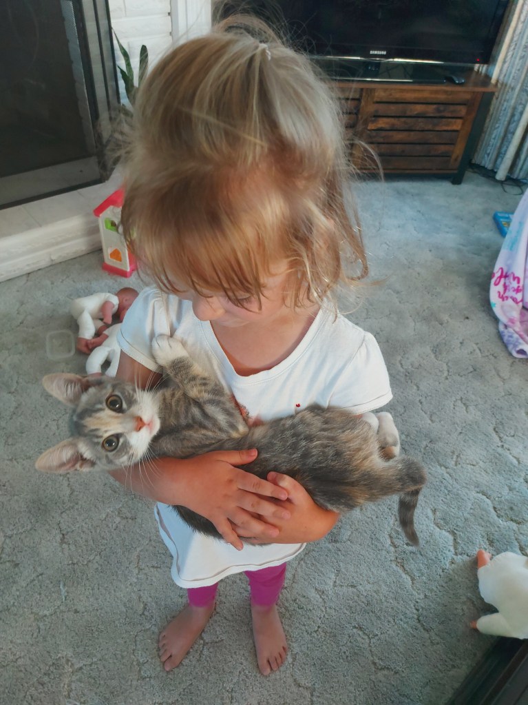 Had to share this one last adorable photo of our new kitten. She came to us around Fathers Day weekend. she’s much bigger now.